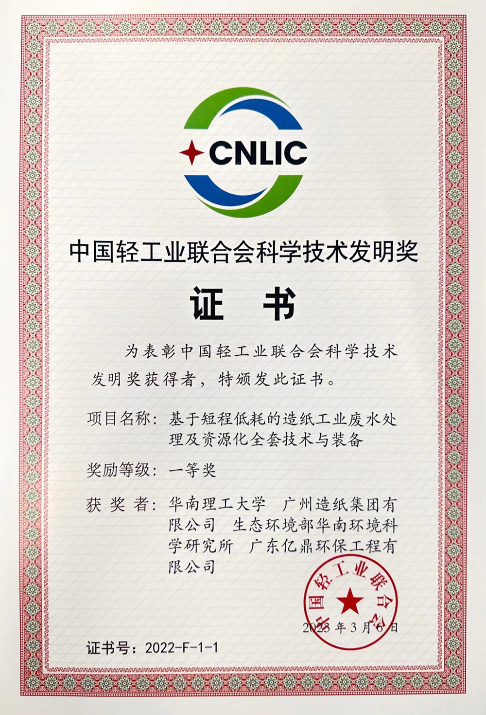 中国轻工业联合会科学技术发明奖